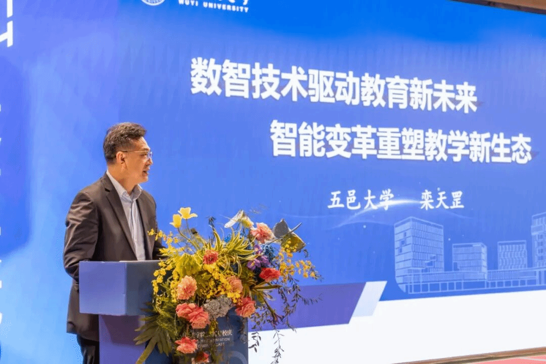 五邑大学党委书记栾天罡聚焦“数智技术驱动教育新未来,智能变革重塑教育新生态”,立足学校华侨捐建的独特背景,深入阐述了国家战略引领下教育数字化转型的必然趋势,分享了学校以人工智能赋能教育教学融合创新、构建跨学科应用型人才培养新体系、新模式的创新举措,为应用型大学数字化转型提供了前沿思路。