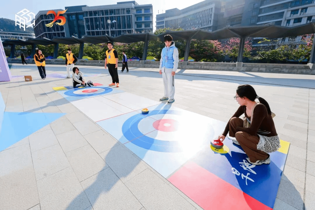 运动场边的“活力印”,冰壶挑战等趣味项目吸引了众多挑战者,汗水与欢笑,是最直接的青春表达。