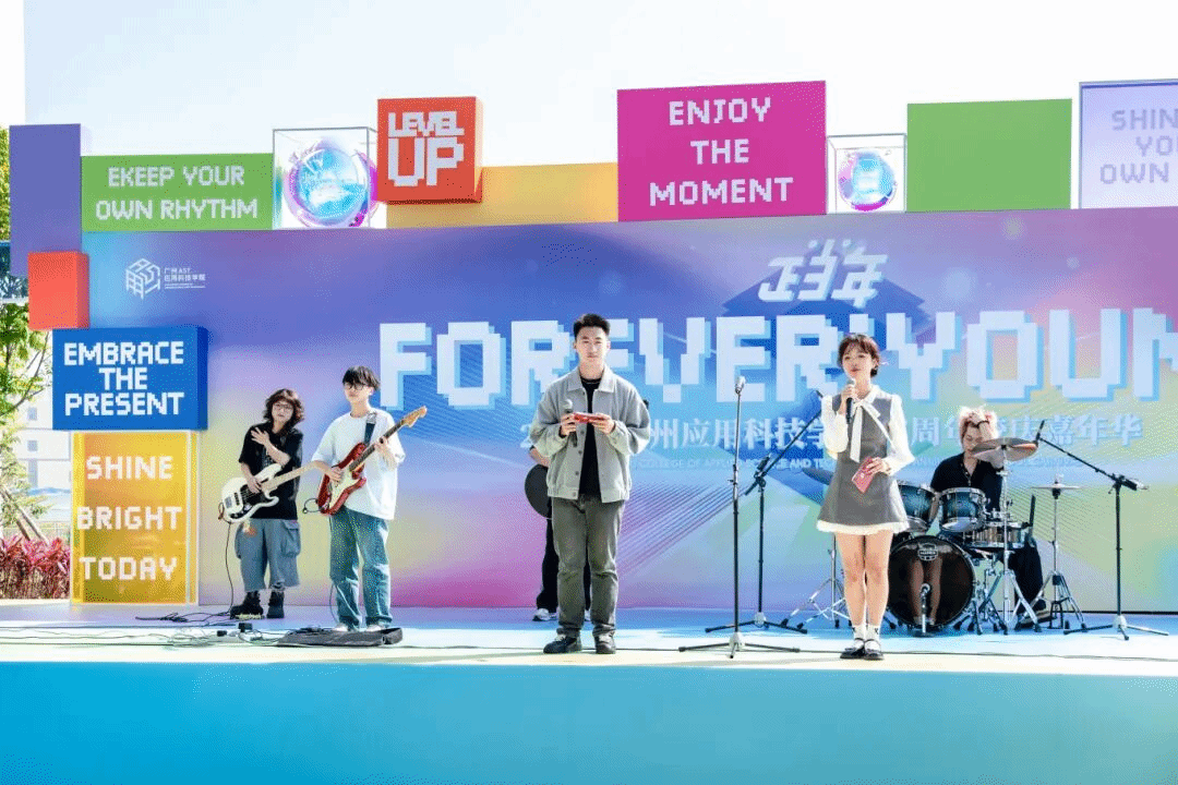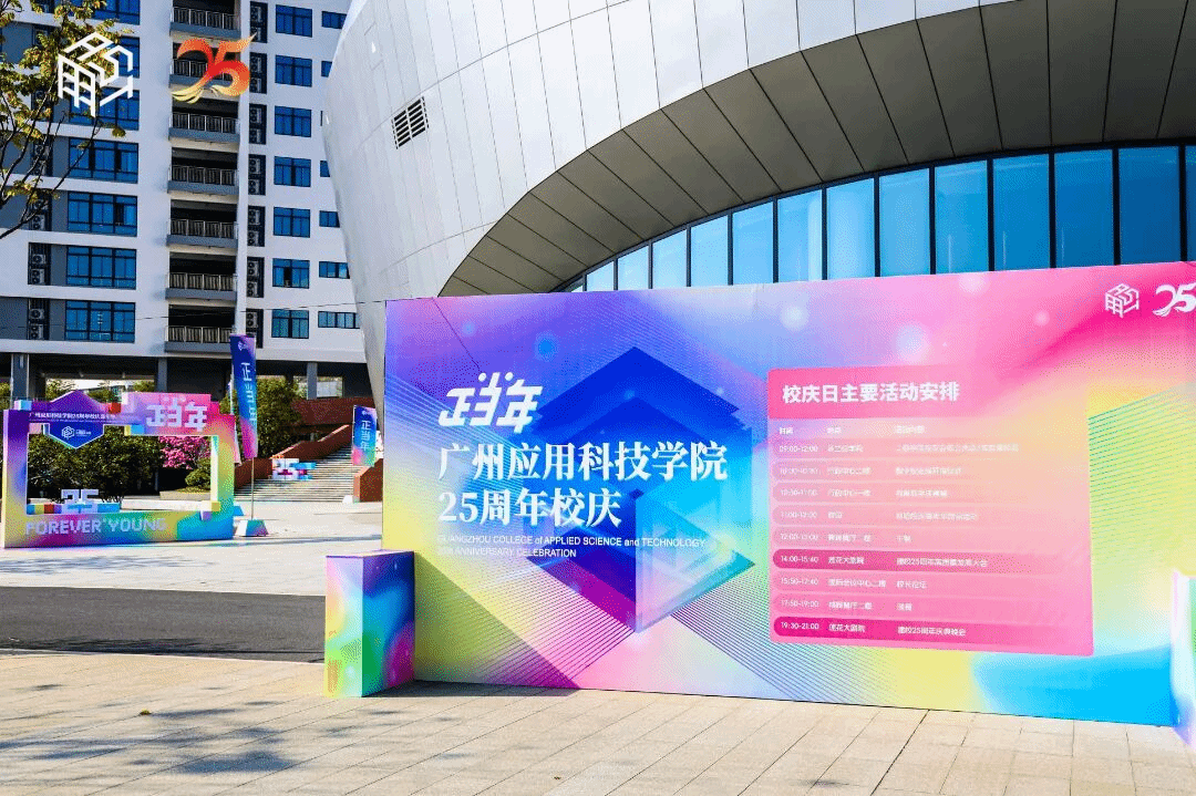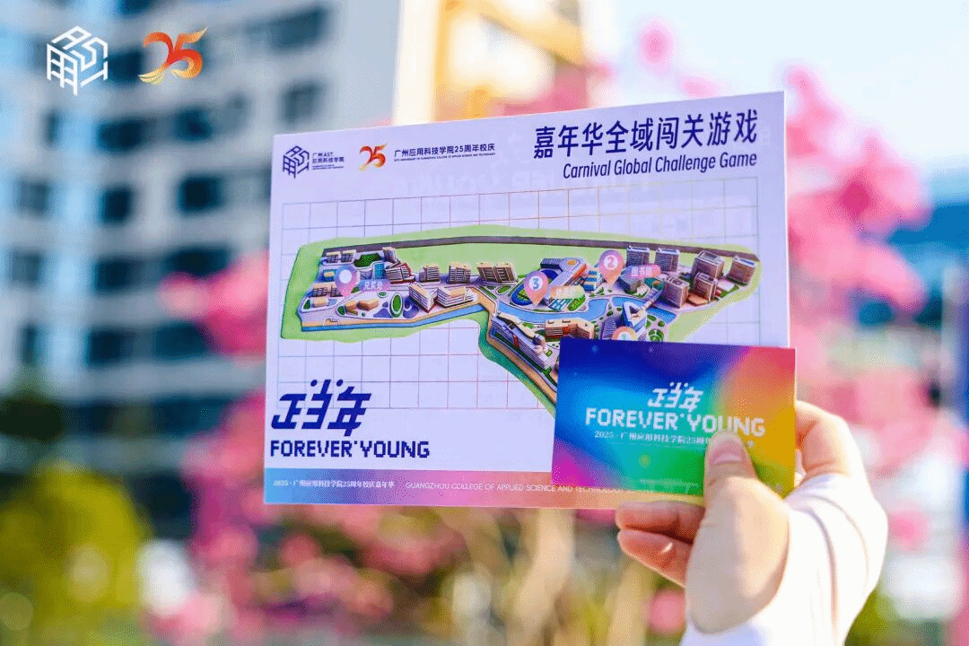 当时间的指针拨回2025年12月21日,广州应用科技学院的校园,一场25周年校庆嘉年华欢乐开启。它化身为一颗巨大的、跃动着青春脉冲的“狂欢星球”。这一天,建校25周年的厚重历史,与充满未来感的像素风潮奇妙相撞,“正当年,FOREVER YOUNG”的主题,如同一把密钥,为全校师生与归来校友解锁了青春的N种打开方式。从晨光熹微到华灯初上,一场沉浸式的时光派对在此上演,活力与创意,是它最亮眼的底色。