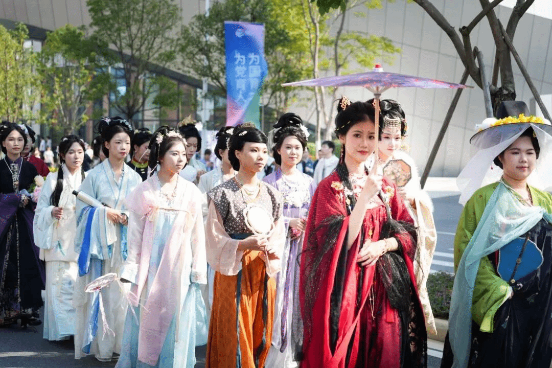 23级新闻专业的吴钰婷,身着一袭精美汉服,全程跟随英歌舞队巡游。高温之下,她的步伐依然坚定,只愿将中华传统服饰之美展现得更加完整。这份源于热爱的坚持,本身便是“正当年”最美的姿态。