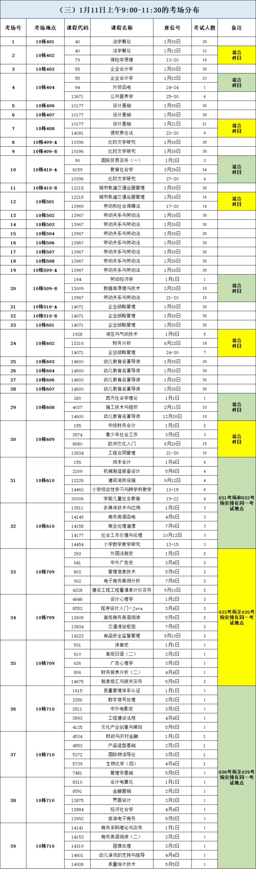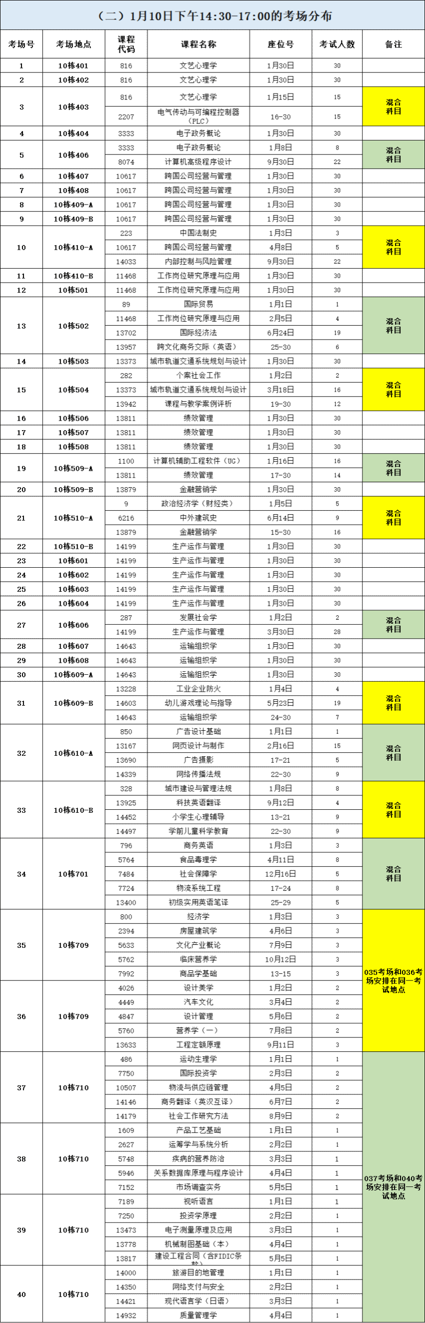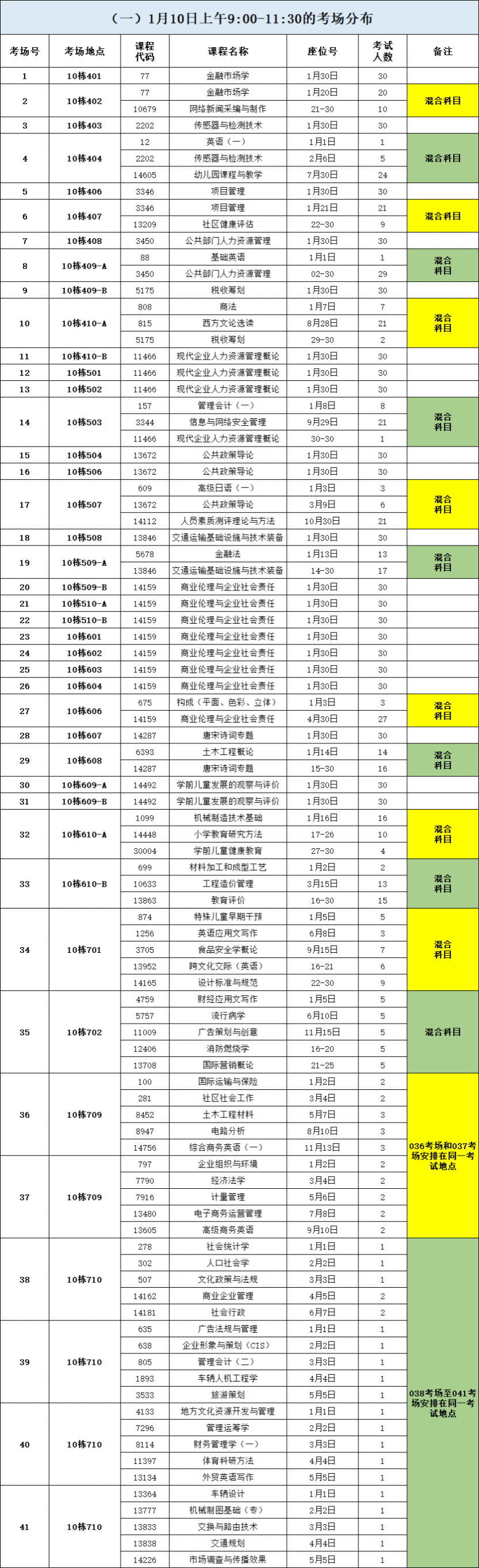 三、考场安排(10栋教学楼)