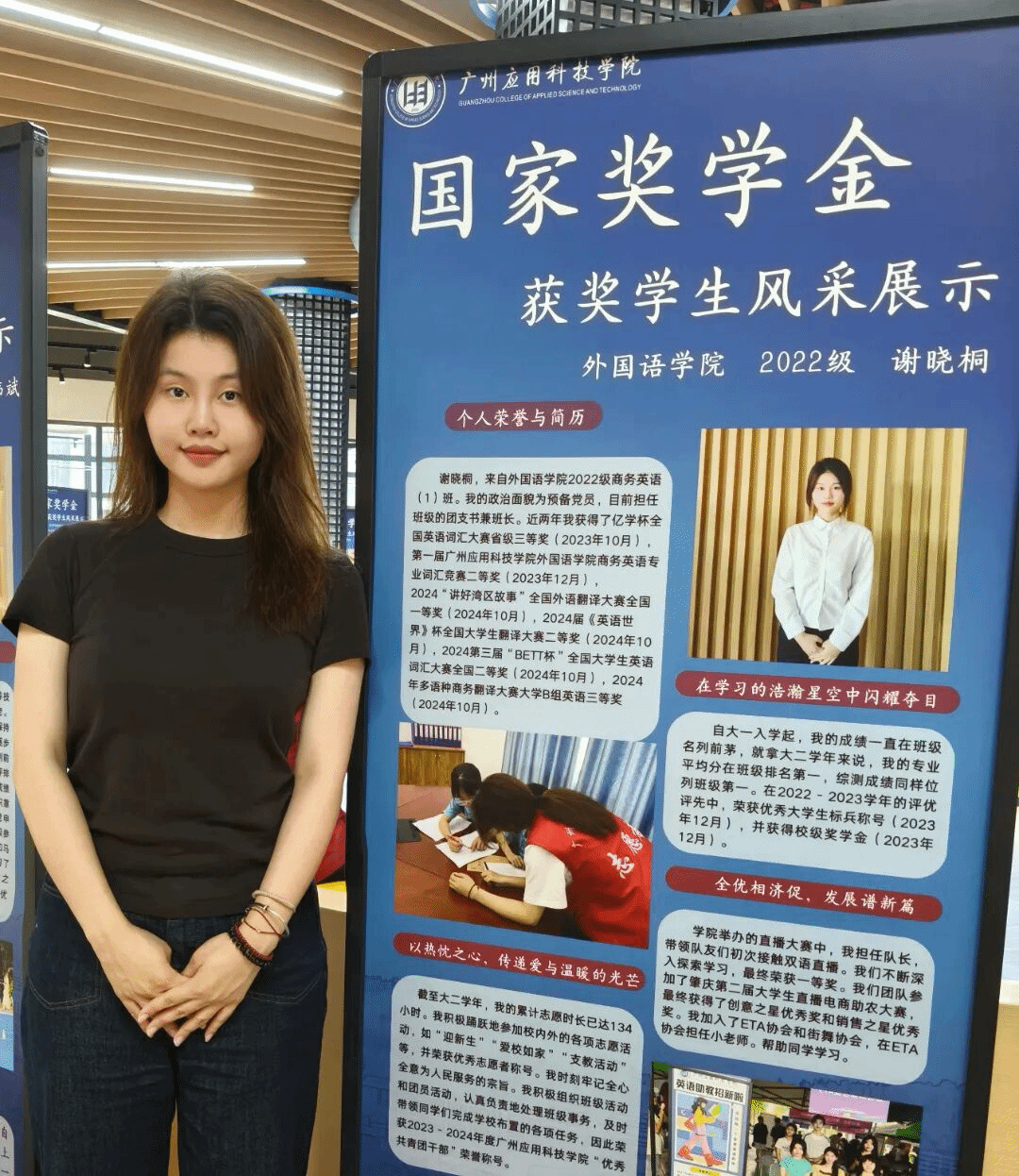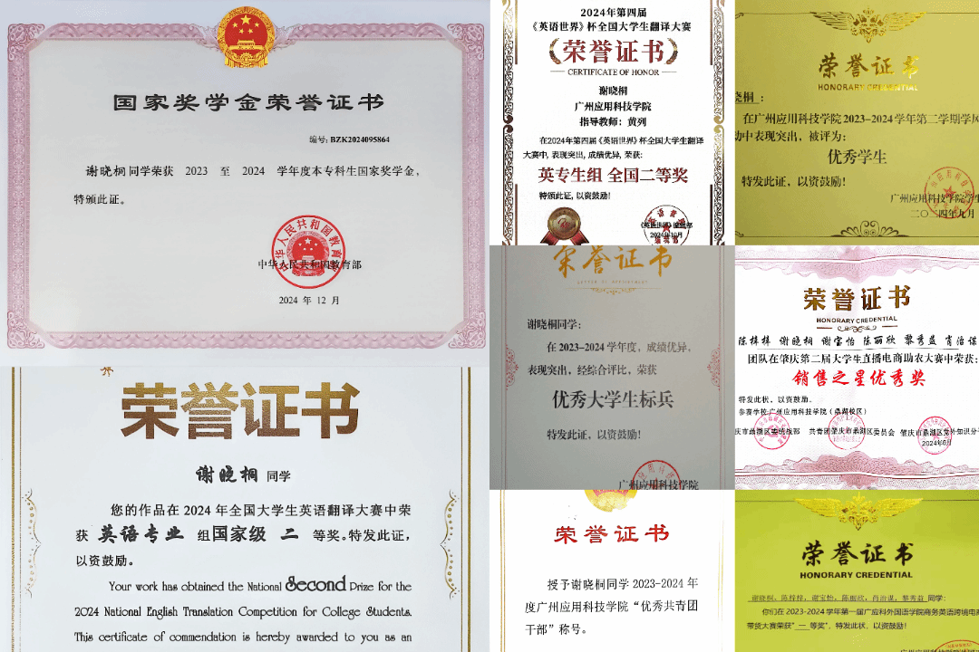 ▲谢晓桐的获奖情况与学习照片