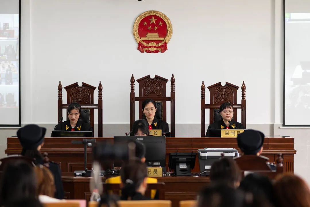 5月18号下午3点 ,冠军赛正式开始。19法学14班(合议庭),19法学20班(公诉人),综合4班(辩护人),书记员叶碧怡同学、法警李雯敏同学、法警王琳琳同学进入决赛参赛。