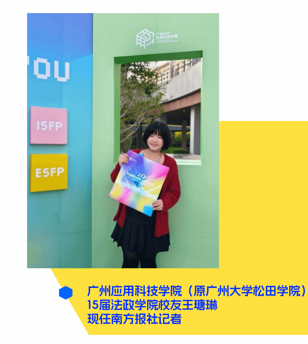 毕业十年间,王瑭琳依旧和广应科法政学院的林庆佳老师和吴勇太老师保持着紧密的联系。师生间会时不时分享工作中遇到的问题,亦是生活里发生的趣事。