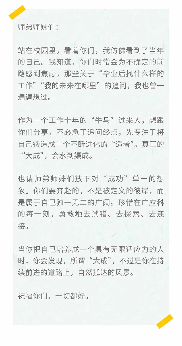 “体、技、心三适绝非孤立发展。‘体适’是根基, ‘技适’是武装,最关键的是‘心适’,这是一种内在的稳定与丰富。广应科将此作为培养框架,其远见在于,它要交付的不是一个个标准化零件,而是一个个具备持续自我升级能力的、完整的人。毕竟,我们最终要适应的,不仅是某一项技术或工作,更是这充满不确定性的漫长一生。”