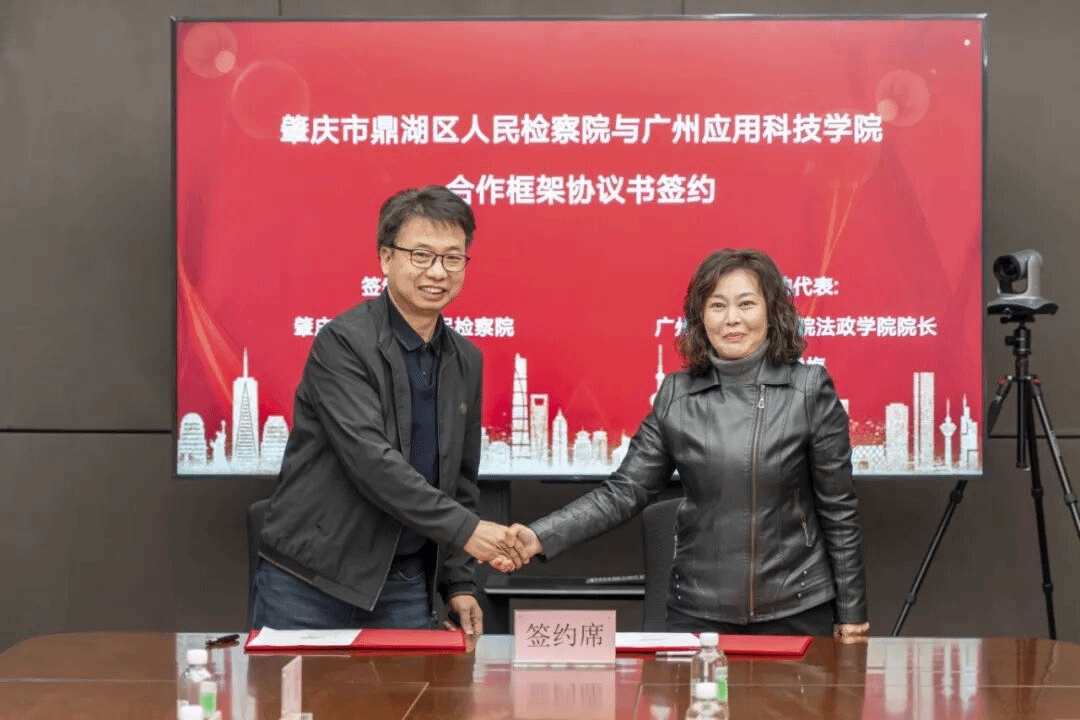 ▲鼎湖区人民检察院与广州应用科技学院签署合作协议