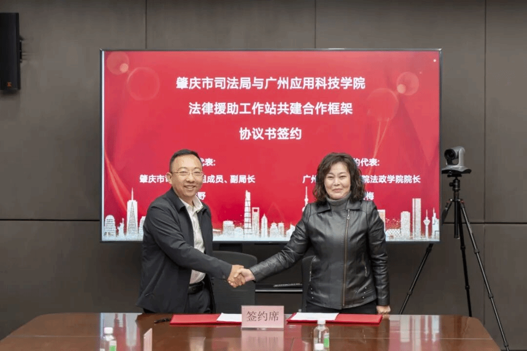 ▲肇庆市司法局与广州应用科技学院签署合作协议