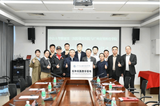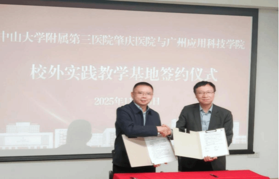 2025年11月26日,广州应用科技学院常务副校长吴舸带领体育科技学院院长张军及副院长陈飞等一行6人,赴中山大学第三附属医院(肇庆医院)开展实习巡查,并举行校外实践教学基地签约仪式。