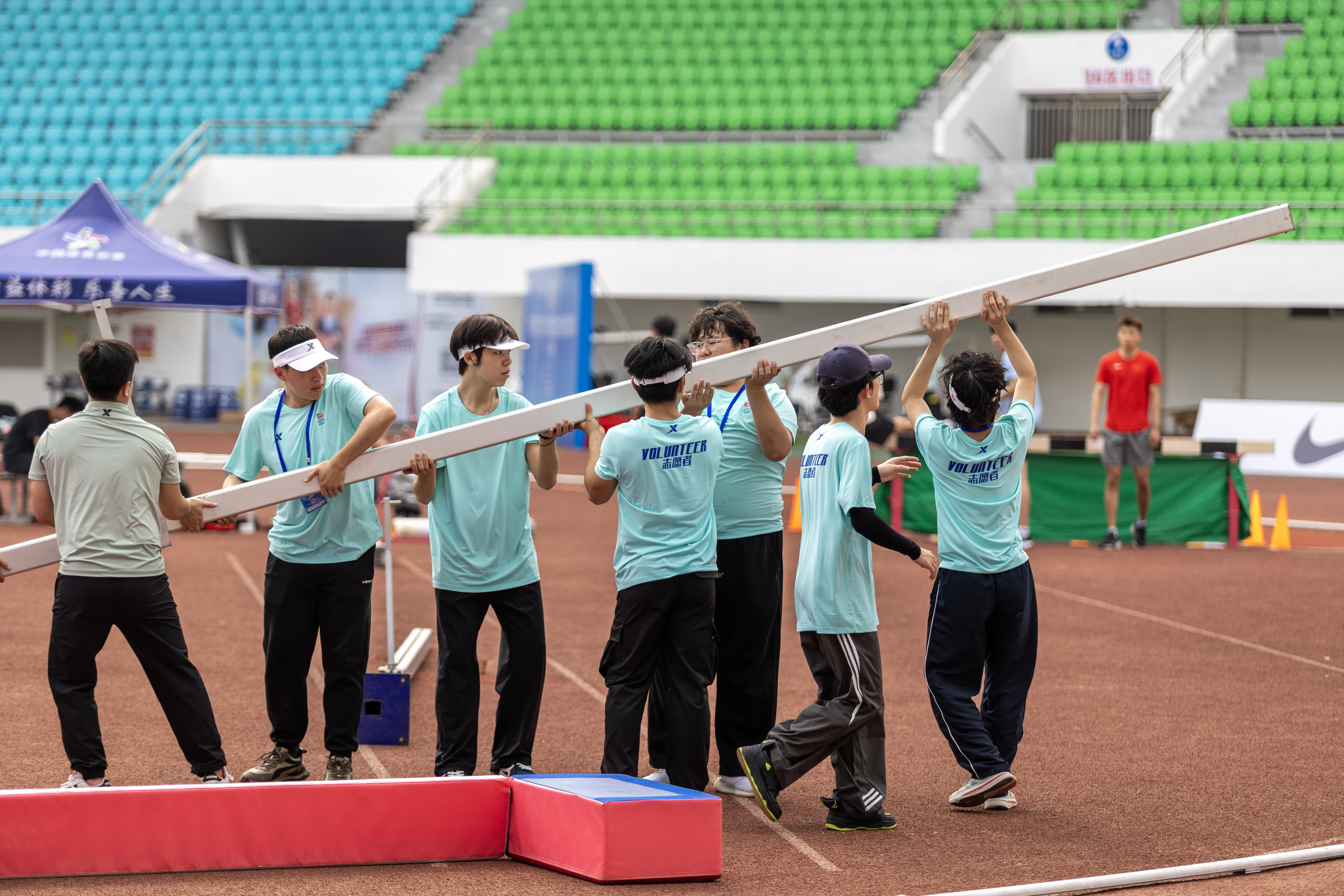 守护“中国速度”“苏神”上场,广应科在场短跑名将苏炳添亮相广东肇庆举行的2025全国田径大奖赛首站男子100米比赛这是“亚洲飞人”时隔一年再次在百米赛道上亮相广应科选派120名志愿者统一身着天蓝色服装服务本次大赛也是本次田径大奖赛中选派志愿者最多、...