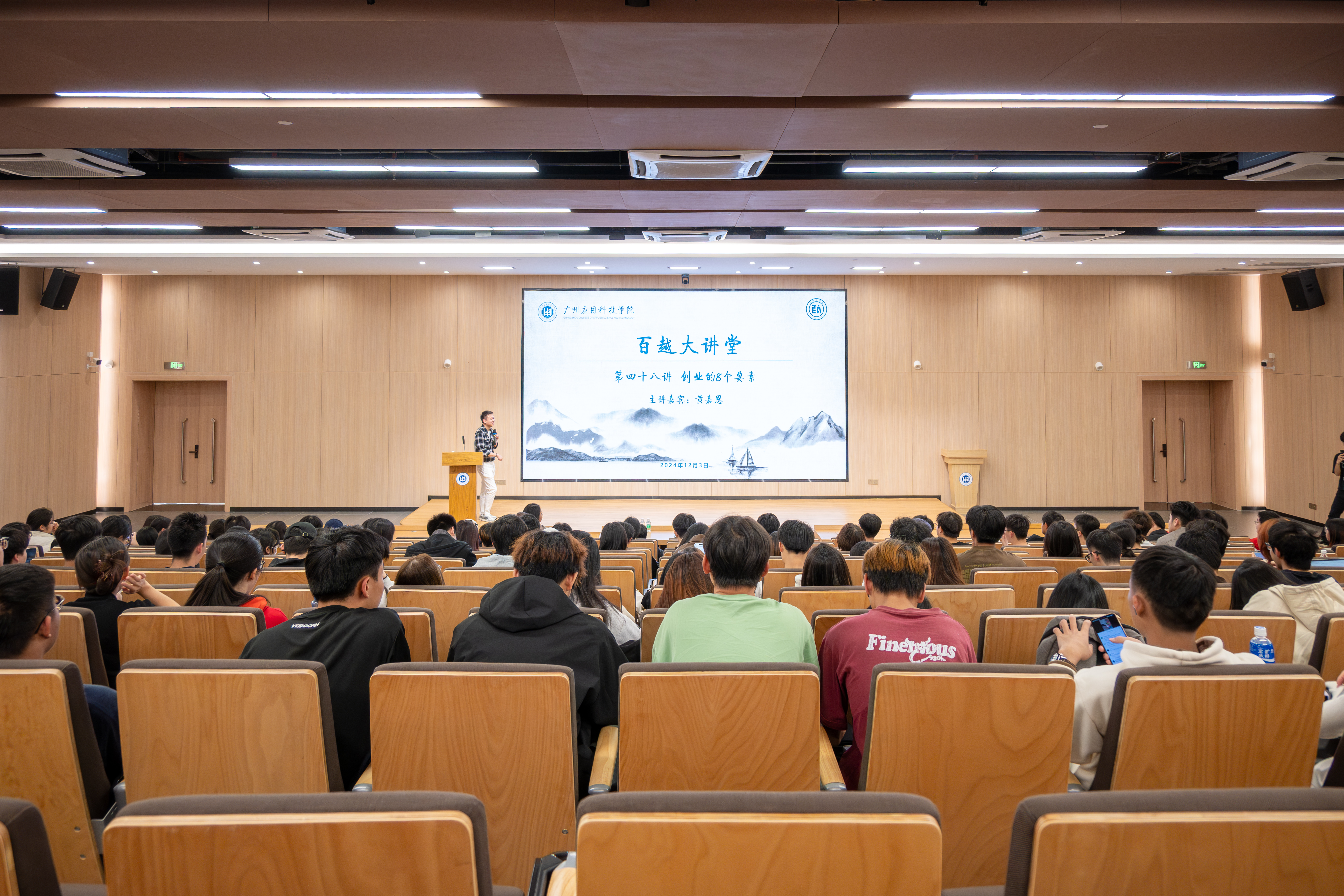 12月3日下午,“百越大讲堂”第四十八讲于我校图书馆一楼报告厅举行。味来食品联合创始人、无休传媒CEO黄嘉恩先生应邀为我校师生作《创业的8个要素》专题讲座。350余名师生代表参加讲座,讲座由创新创业学院刘佳老师主持。...