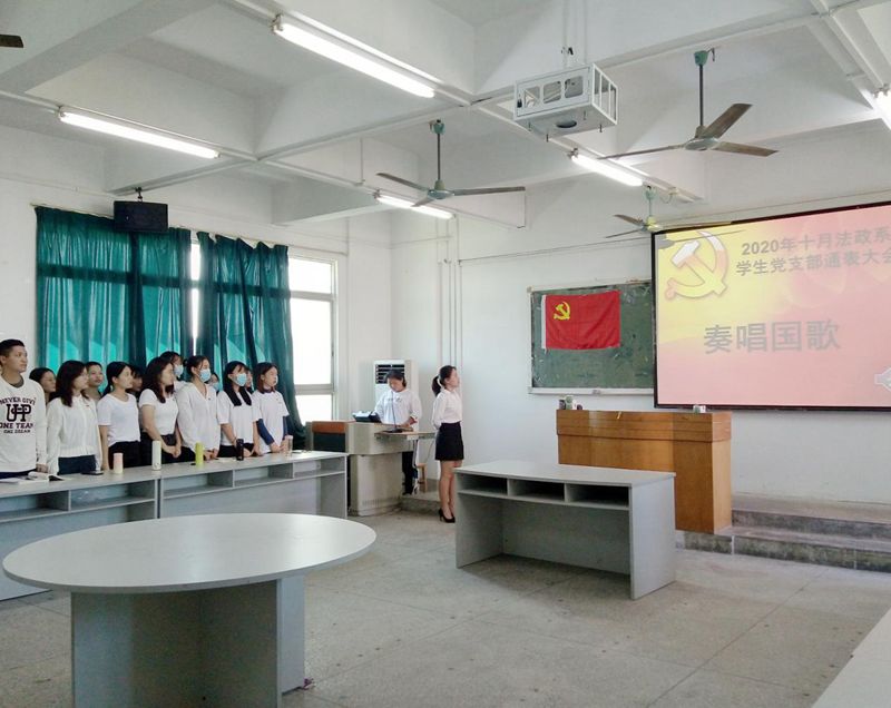 10月27日,法政系学生党支部在六栋教学楼召开学生党支部预备党员转正通表大会。法政系教工党员余缅萍老师、贝丽珊老师、朱彩菊老师和预备党员转正申请人何喜儿、朱景引、刘玲、纪庆哲、陈婷以及18级全体党员参加。 ...