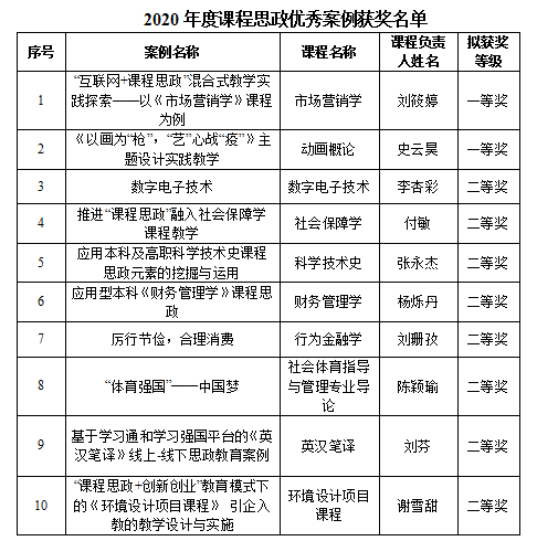 按照广东省本科高校文化素质教育指导委员会《关于征集课程思政教学优秀案例的通知》文件安排,我校开展了案例推荐遴选工作,并报送广东省本科高校文化素质教育指导委员会。近日,广东省本科高校文化素质教育指导委员会将2020年度课程思政优秀案例入选名单予以公示。...