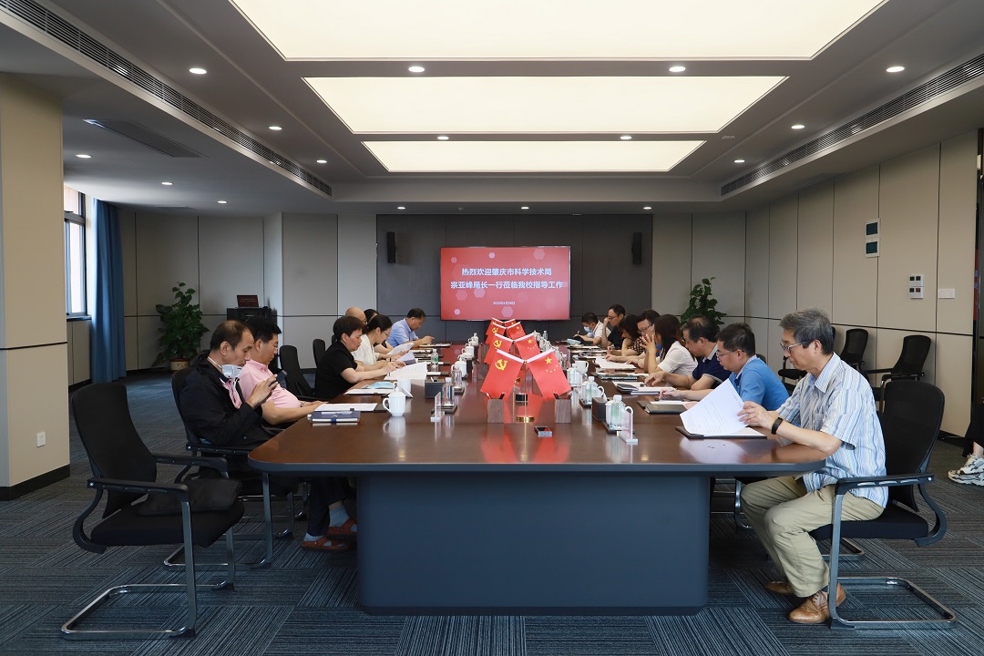 2022年4月28日,肇庆市科技局宗亚峰局长带队,陈俊钢科长、杨双梅科长一行3人莅临我校指导调研。副校长李江凌、副校长李荆松等校领导及各相关部门、二级学院负责人出席调研。 副校长李江凌、副校长李荆松等校领导陪同宗亚峰局长一行实地调研了肇庆校区实训实验室、...