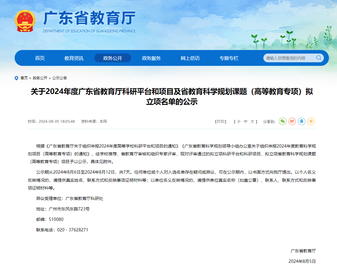 8月5日,广东省教育厅发布《关于2024年度广东省教育厅科研平台和项目及省教育科学规划课题(高等教育专项)拟立项名单的公示》。经学校推荐、省教育厅审核和组织专家评审,广州应用科技学院共有5项广东省教育科学规划课题(...