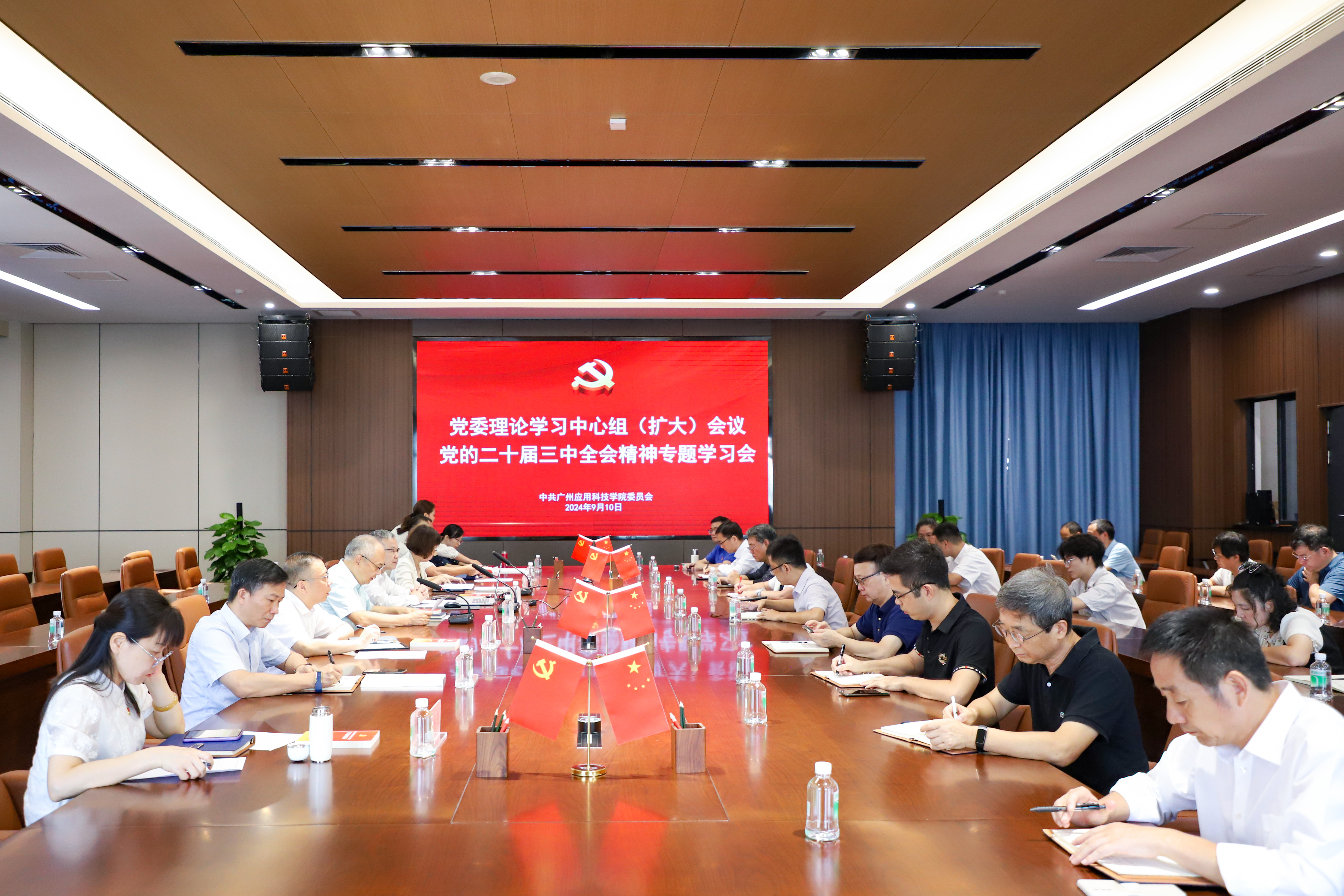 2024年9月10日上午,我校在肇庆校区行政中心五楼国际会议厅,召开党委理论学习中心组(扩大)会议,专题学习贯彻党的二十届三中全会精神,推进学校教育事业高质量发展。学校党员校领导、党委委员、纪委委员、党员中层正职(...