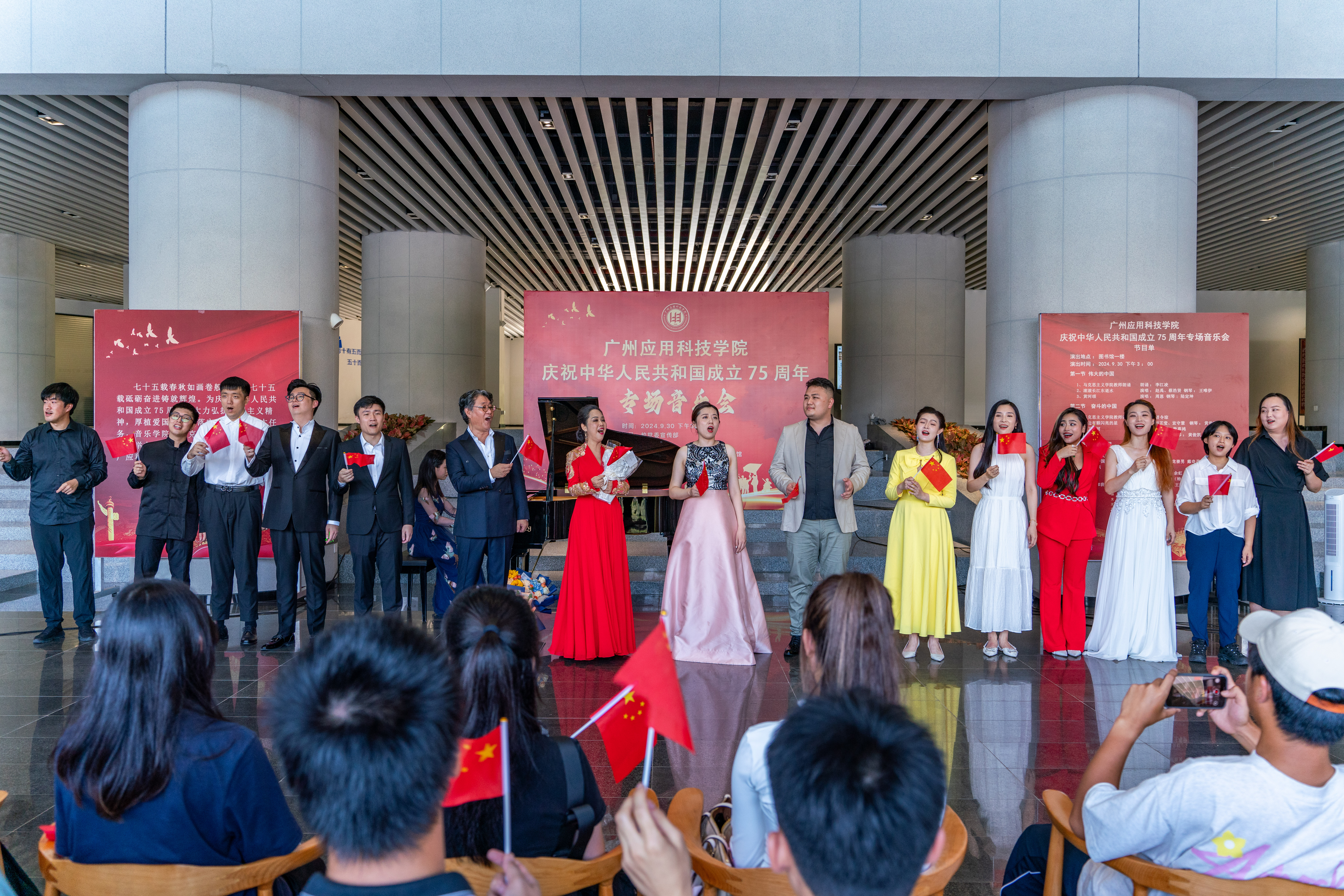 在金秋送爽、举国同庆的美好时节,广州应用科技学院洋溢着一股浓厚的节日氛围。为庆祝中华人民共和国成立75周年,9月30日下午,学校举办国庆专场音乐会,以音乐为媒介,向祖国献上最诚挚的祝福。 本场音乐会由校党委宣传部为指导,...