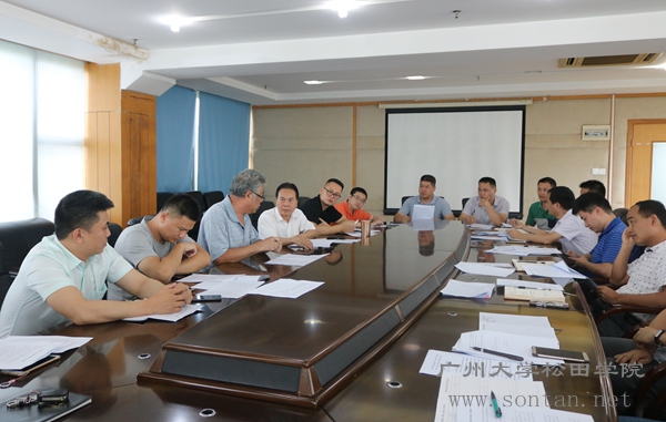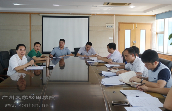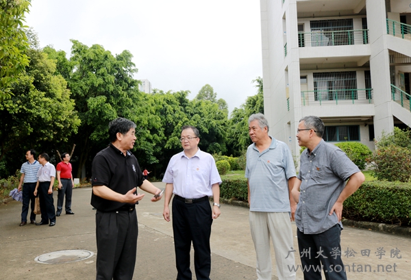 广州大学党委书记屈哨兵(右三)现场听取我院院长庞永师(右二)、学院党委书记王永云(右一)、常务副院长熊开峰(右四)关于学院发展的现场汇报。 松田网讯(记者:李帆 摄影报道)6月6日下午,广...