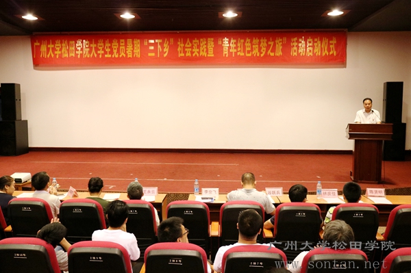 松田网讯(记者:黄佩珊 通讯员:万烨萍 赵智荣)7月13日,我院大学生党员暑假“三下乡”社会实践暨“青年红色筑梦之旅”活动启动仪式在行政楼三楼多功能厅举行。党委书记王永云,党委副书记李金飞出席。仪式由团委书...