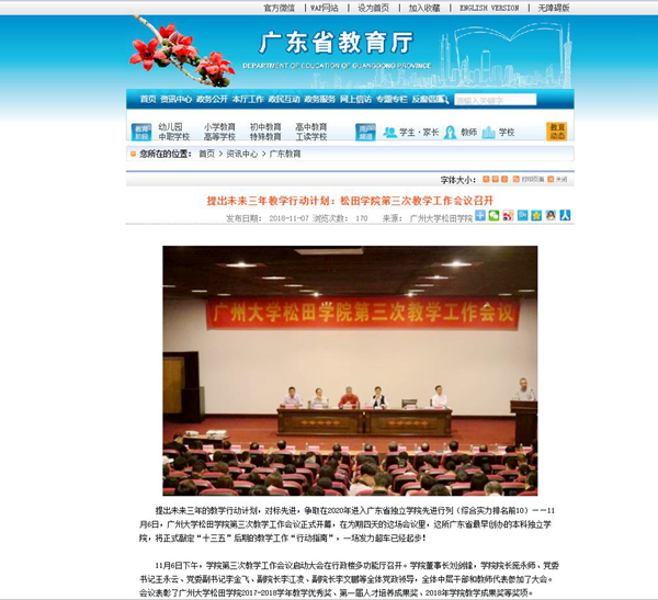 松田网讯(记者:李帆 报道)11月7日,广东省教育厅刊登我院通讯员文章《提出未来三年教学行动计划:松田学院第三次教学工作会议召开》。 全文刊载: 提出未来三年教学行...