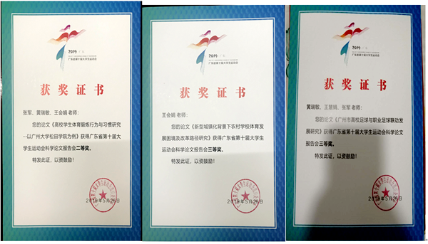 松田网讯(记者:黄佩珊 通讯员:张军 王会娟)5月24至26日,广东省第十届大学生运动会科学论文报告会(以下简称科报会)在深圳大学元平体育馆举行,社会体育系获奖教师张军、王会娟、黄瑞敏参加了此次科报会。 ...