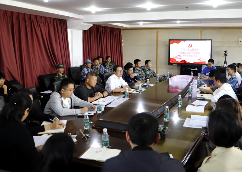 松田网讯(记者:黄佩珊学生记者:曾坤森)我校在行政楼六楼第一会议室召开2019年征兵工作暨退伍学生座谈会。校党委副书记裴九雄,武装部部长胡斌,武装部副部长郭振,以及我校退伍学生代表参与会议。会议由武装部部...