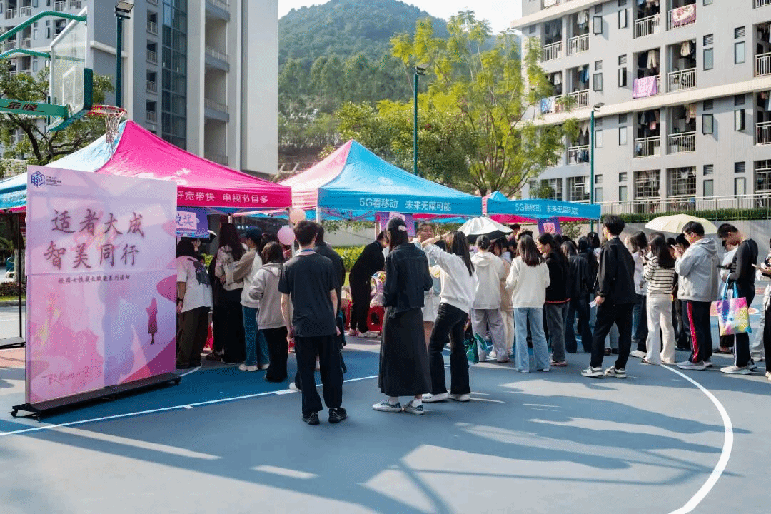 三月风暖,花开正好。为迎接第116个国际劳动妇女节,致敬每一位了不起的她,展现我校女性自信昂扬、青春向上的精神风貌,3月7日下午,我校“她时光·春日漫游记”妇女节主题活动在C区篮球场温情启幕。本次活动由校团委统筹策划,各二级学院与学生社团协同联动开展。活动设置游园会、随机舞蹈、美妆体验、DIY创作等丰富环节,为师生们搭建展示自我、互动交流的平台。轻松愉悦的氛围里,每一位女生都自在舒展、尽情欢笑,以最鲜活的青春姿态,绽放出新时代女性独有的自信与光芒。
