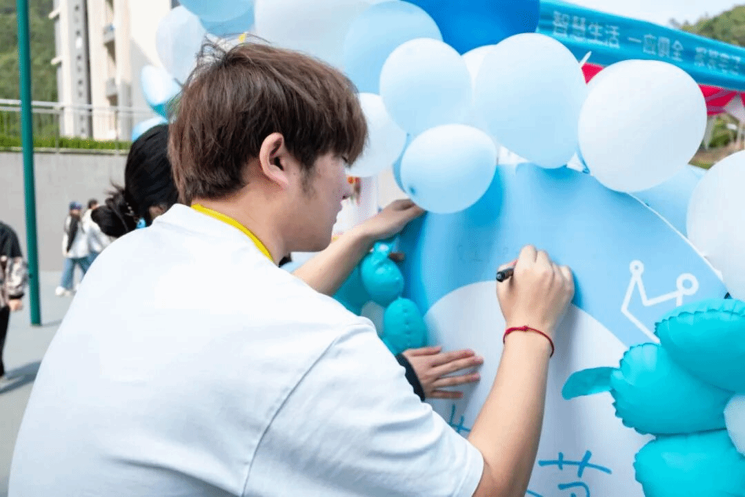 “掌纹千色,共映她谱”打卡活动为同学们打造了本次活动的打卡点。纯色背景板上印着“我们生来不同,如同光谱中无法复刻的独特色彩。”同学们纷纷驻足,在板上按下彩色的手印。掌纹交错,是独一无二的个体印记。多种色彩在此相遇,汇聚成了一幅由无数个“她”共同绘制的生命图谱,映照着女性群体最真实、最绚烂的模样。