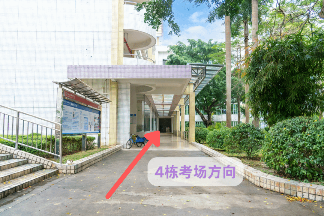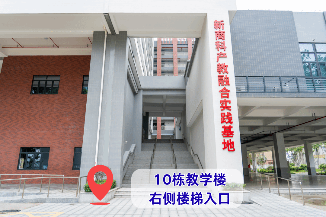 进校后直行,绕花坛环后上坡直行,经过喷水池后即可到达10栋教学楼。从10栋教学楼右侧楼梯上至二楼,到204室存放个人物品(手机、包等)。存放物品后,在二楼封闭区内有序排队进行人脸识别和安检,通过后方可上楼进入考场。