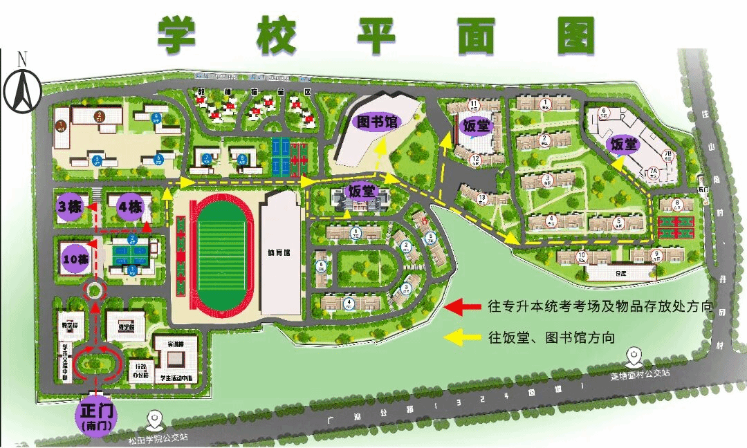 1.考场紧挨学校南1门,为方便考生赴考,考试期间仅开放南1门。乘坐网约车来校考生务必按以上“导航位置”导航,乘公共汽车来校考生从“松田学院站”下车。