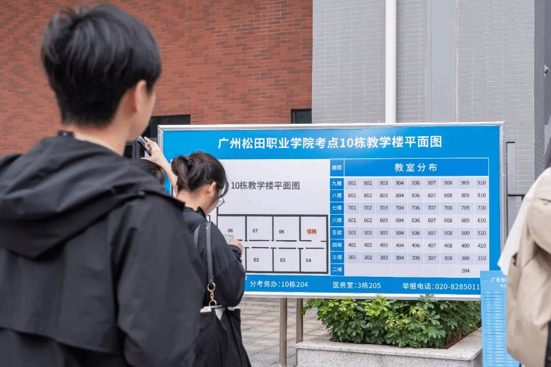 校园内,从入口到各考场的沿途均设有醒目的路径指引标识和详细的考场分布示意图,帮助考生快速、准确地找到对应考场位置,有效缓解了考前紧张情绪。医护人员的驻守也为考生提供了及时的健康保障。