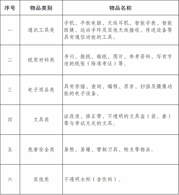 (三)本次考试需将与考试无关的物品统一存放指定地方。为避免物品遗失,建议考生仅携带必要证件和考试文具,切勿携带贵重物品。