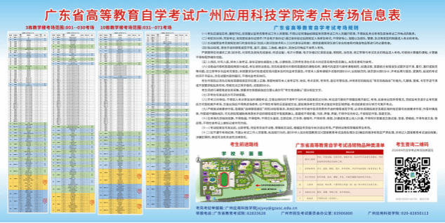 广东省2026年4月自学考试将于4月11、12日正式举行,为确保考试安全、平安、顺利进行,现将广州应用科技学院(广州校区)考点考场安排及相关注意事项予以公布,请考生提前做好准备。