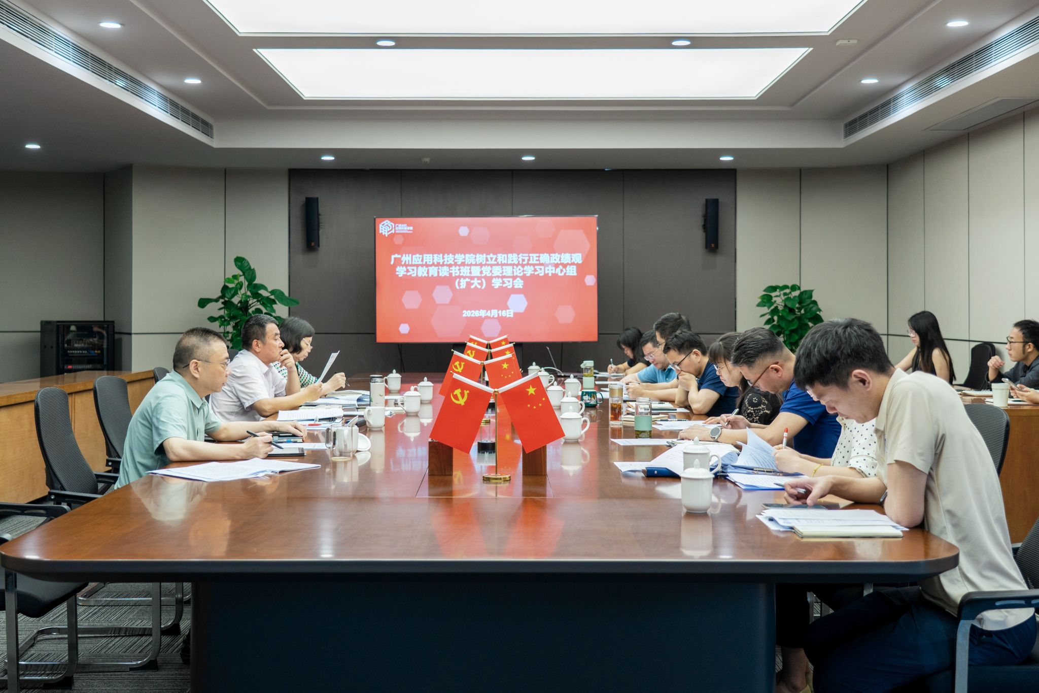 4月15日至16日,广州应用科技学院在肇庆校区举办树立和践行正确政绩观学习教育读书班暨党委理论学习中心组(扩大)学习会。全体校领导、党委委员、中层干部、科级干部、党支部书记参加学习,校党委书记陈光团主持。