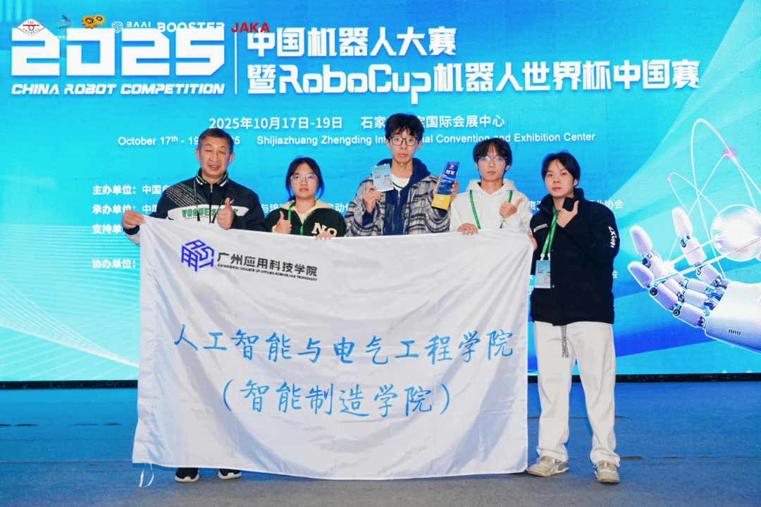 ▲ 2025年中国机器人大赛全国总决赛上,广州应用科技学院团队在2D仿人机器人乒乓球赛项中荣获全国总冠军。