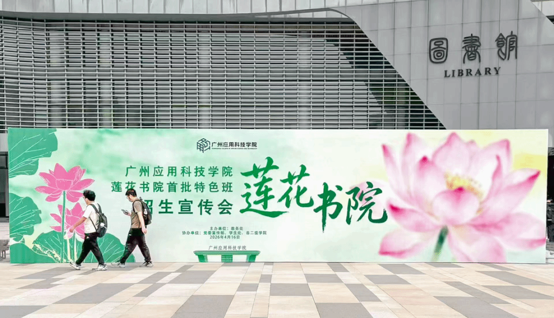 4月16日,广州应用科技学院莲花书院首批特色班招生宣传会在图书馆一楼大堂拉开帷幕,现场展板林立、资料齐备,来自各二级学院的学生将咨询台围得水泄不通。这场将持续至4月19日的招生盛会,以36个覆盖多学科的特色成长赛道,点燃了广应科学子对未来发展的无限期待。
