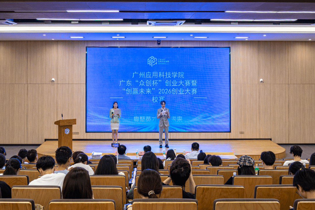 4月27日,广东省“众创杯”创业大赛暨“创赢未来”2026创业大赛广东省选拔赛校赛,在广州应用科技学院图书馆一楼报告厅举行。本次赛事旨在深入贯彻创新驱动发展战略,积极响应广东省“百千万工程”号召,通过搭建高水平创新创业舞台,激发学子创新热情,锤炼实践能力,营造浓厚的校园双创氛围。创新创业学院副院长肖伟才、各二级学院双创工作负责人、创业专员、各参赛项目团队及指导老师和评委齐聚现场,参加比赛。