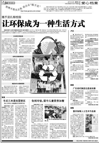 松田网讯(记者:李帆 报道)3月25日出版的《信息时报》A19版头条图文报道该报“随手送”第八期走进广州大学松田学院开展“公益+环保”的爱心活动。