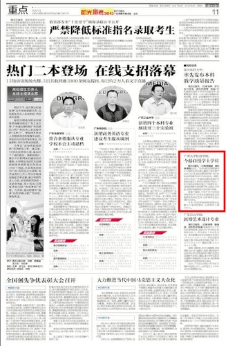 松田网讯(记者:李帆 报道)在6月30日出版的《南方日报》第11版刊登消息《广州大学松田学院今起自授学士学位》,报道我院获得学士学位授予权,并根据教育部有关文件,从今年起自授学位。(下图为当天《南方日报》相关版面截图,红色框为该消息位置)