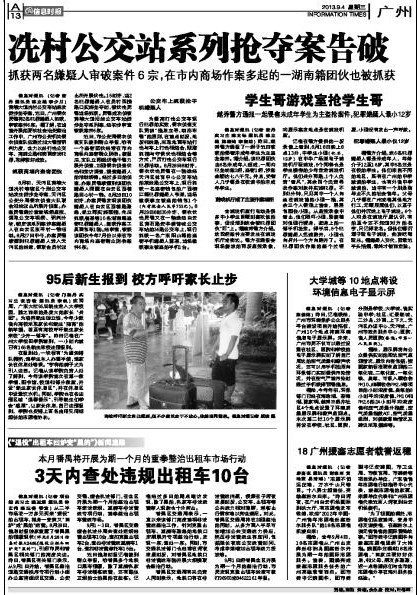 松田网讯(记者:李帆 报道)9月4日出版的《信息时报》A14版刊登消息《95后新生报到 校方呼吁家长止步》,图文报道我院的2012级新生入学注册报到工作。