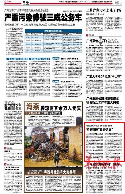 松田网讯(记者:李帆 报道)11月12日,《羊城晚报》刊登消息《“南沙湿地杯”大学生辩论赛即将开锣 初赛辩题“谈婚论嫁”》,报道第三届羊城大学生辩论赛将于本月中下旬在我院举行启动仪式。