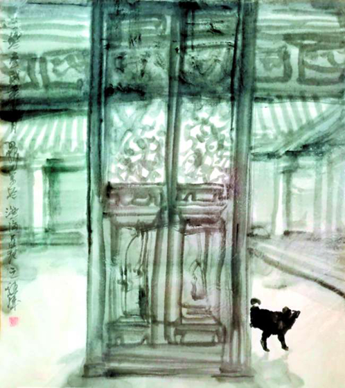 ▲故乡感怀(国画)卢小根
