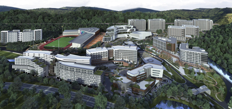 据了解,广大松田学院的肇庆新校区将由华治科工集团承建,总规划占地1000亩,第一期地块土地面积约为24.39万平方米(约366亩),规划建筑总面积达36.59万平方米。新校区将遵从群山环抱、水系绕流的地形条件,以“山水校园、文礼学府”为设计理念,将其打造成为多彩肇庆的一个全新的教育亮点。
