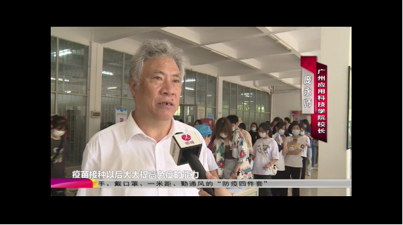 4月14日当天,增城电视台来校采访,我校校长庞永师及疫苗接种师生接受了采访。当晚,“增城新闻”报道了我校疫苗接种首日的情况。