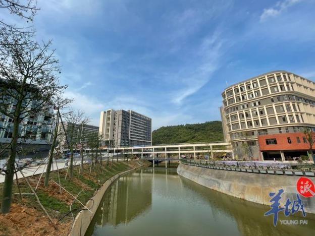 校内不仅围绕丰乐渠修建了亲水平台和步行栈道,还建设了两座跨河桥,以及一座风雨连廊融合师生在南岸和北岸的生活学习。值得一提的是,该风雨连廊共有3层,连接丰乐渠两岸的教学大楼和学生公寓、饭堂和商业中心,学生在任何天气下都无需打伞,便可通行于教室与宿舍之间。