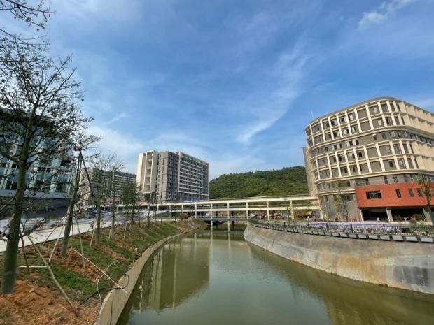 “学校新校区选址落户肇庆,按照高起点、高标准、高品质的规划原则,因地制宜,精心规划、精心设计。自2020年5月19日开工奠基以来,一座布局合理、基础设施齐全、环境优雅、建筑新颖的‘山水校园、文礼学府’如今正式呈现。”广州应用科技学院董事长刘剑锋介绍道。