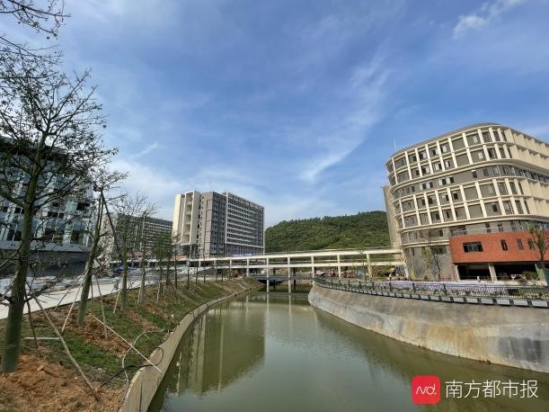 学校肇庆校区分为南北两岸,在丰乐渠的北岸,以图书馆、体育馆、足球场、学生公寓、教师公寓和商业中心为主;南岸则以教学楼、实验楼、行政楼为主要建筑。目前,该校肇庆校区不仅围绕丰乐渠修建了风景优美的亲水平台和步行栈道,同时建设了两座跨河桥,以及一座风雨连廊融合师生在南岸和北岸的生活学习。值得一提的是,该校已经建成的风雨连廊共有3层,连接丰乐渠两岸的教学大楼和学生公寓、饭堂和商业中心,学生不仅可以在桥上打卡休闲,而且在任何天气下都无需打伞,便可通行于教室与宿舍之间。