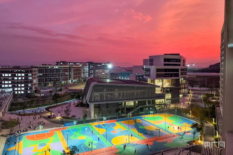 晚霞映衬下的广州应用科技学院(央广网发 受访者供图)