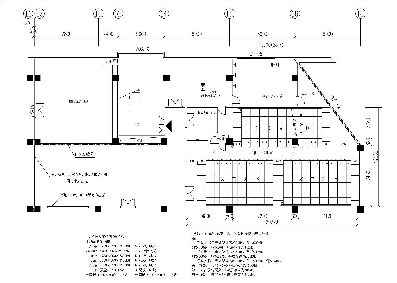 要求能够最大限度地利用档案库房空间,上图只作为示例,实际设计时与中标单位再作商讨,会有小的改动。