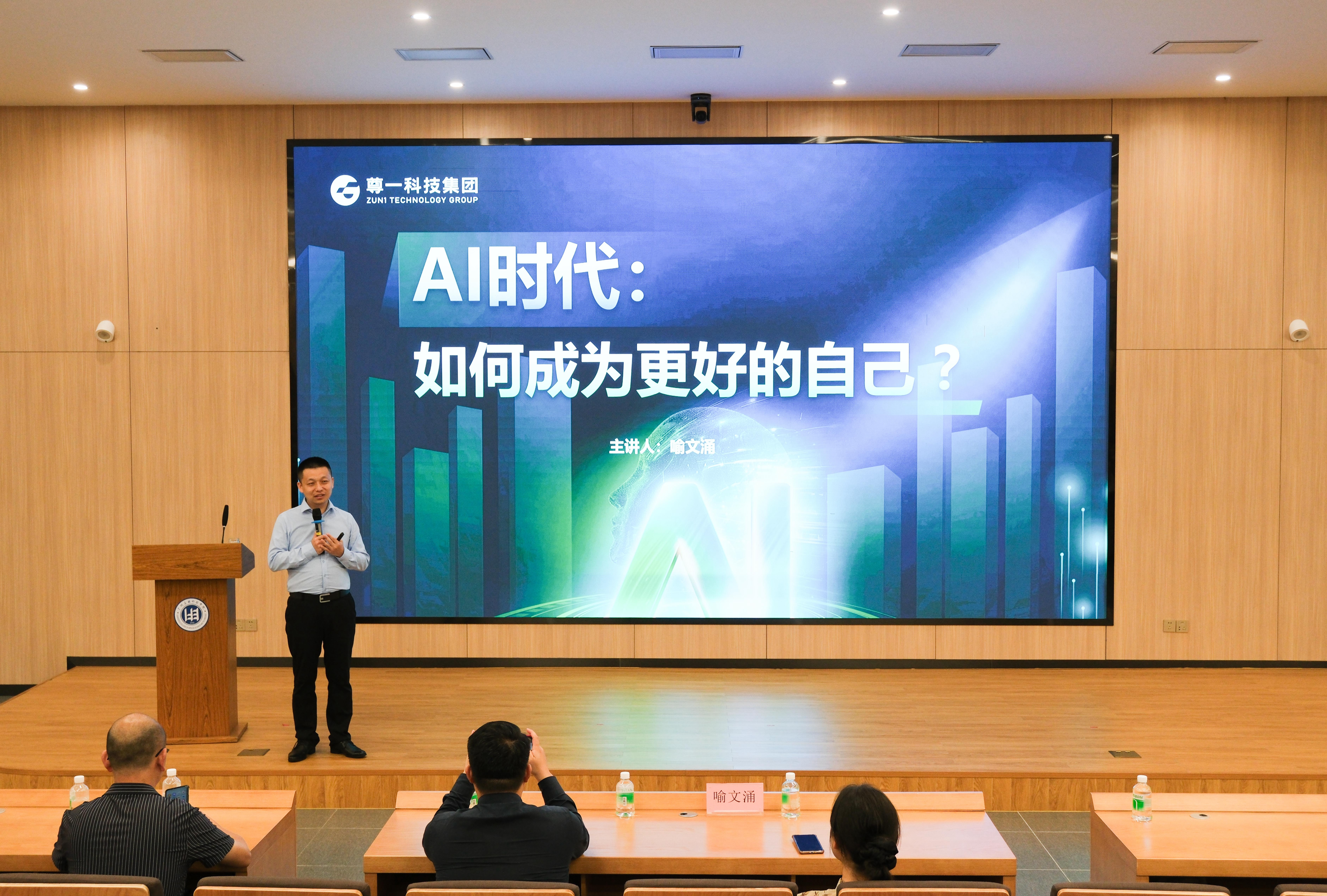 百越大讲堂”第五十三讲于5月20日在图书馆一楼报告厅举行,尊一科技集团总裁喻文涌应邀为我校师生作《AI时代,如何成为更好的自己》专题讲座。校团委书记郭振及300余名师生参加讲座,讲座由郭振主持。