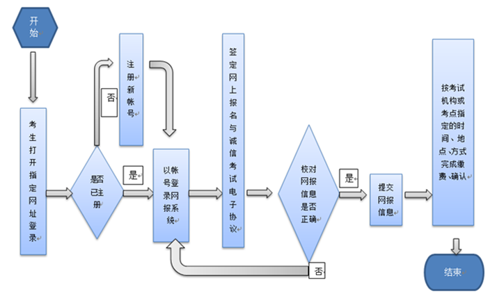 考生登录全国计算机等级考试报名系统(简称“报名系统”,下同,网址:http://202.116.236.74/NCRE_EMS/StudentLogin.aspx)进行网上报名,具体考生报名流程如下: